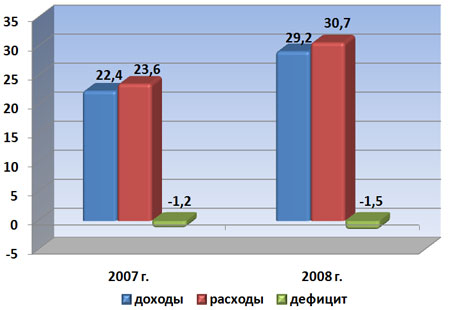 В результате в 2008 г. доходы бюджета превысили 29 млрд. рублей, что на 30% больше, чем в 2007 г.Расходы консолидированного бюджета исполнены в объеме почти 31 млрд. рублей, что на 30% больше, чем в 2007 году.