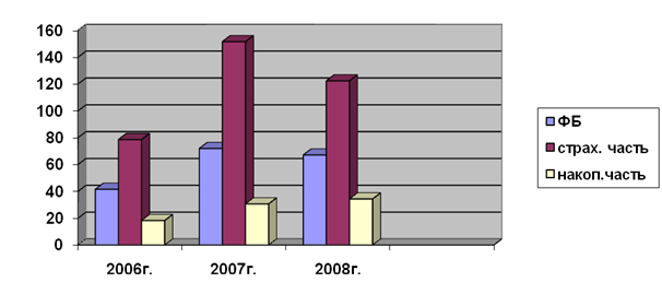 Рисунок 3.1 — Диаграмма исчисленных налогов в Фонд социального страхования, фонды обязательного медицинского страхования в 2006-2008г.