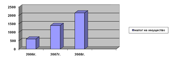 Рисунок 3.3 — Диаграмма исчисленного налога на имущество организаций в 2006-2008г.