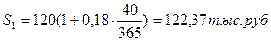 Коммерческая фирма открыла расчетный счет 12 января 2001 года, разместив на нем 120 тыс. руб., 21 февраля со счета было снято 35 тыс. руб., 17 марта поступило 52 тыс. руб. Простая ставка 18 % годовых. Чему равен остаток на конец первого квартала, на 31 марта? Британская практика расчета.