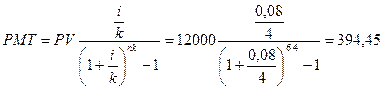 Семья хочет через 6 лет купить дачу за 12 000 д. ед. Какую сумму (одинаковую) ей нужно каждый год в течение этих 6 лет добавлять на свой счет в банке, чтобы накопить нужную сумму, если годовая ставка процентов в банке составляет 8 % и начисление процентов происходит каждый квартал?