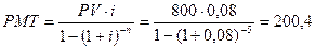 С помощью компьютера найден размер годовой уплаты 200,4 д.ед. при погашении займа 800 д.ед. равными годовыми уплатами, заем выдан на 5 лет при годовой ставке 8 %. Составьте план погашения долга и проверьте компьютерные расчеты.