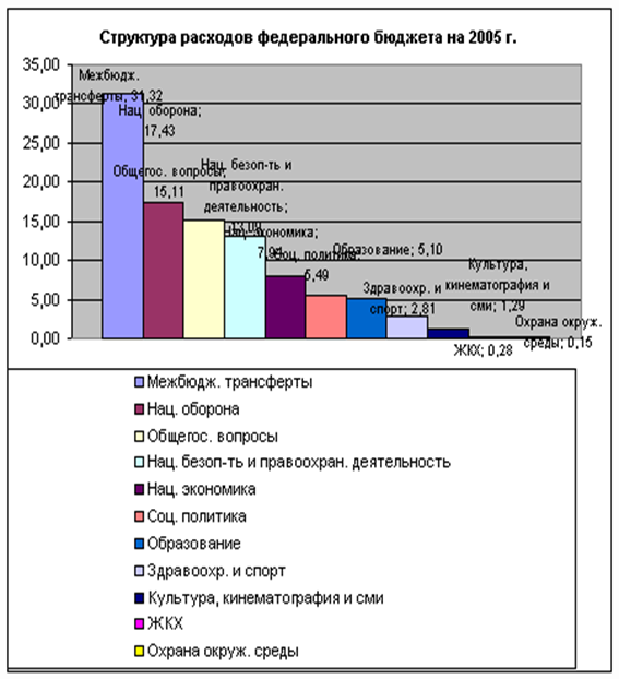 Федеральный бюджет на 2005 год был утвержден по расходам в сумме 3047929,3 млн. рублей и по доходам в сумме 3326041,1 млн. рублей, исходя из прогнозируемого объема ВВП 18720 млрд. рублей и уровня инфляции 7,5-8,5% (декабрь 2005 к декабрю 2004).