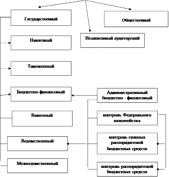 По сфере компетенции контролирующих государственных органов выделяют следующие виды государственного финансово-экономического контроля.