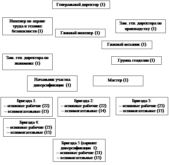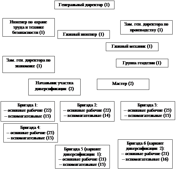Организационная структура предприятия в третьем году с учетом двух вариантов диверсификации