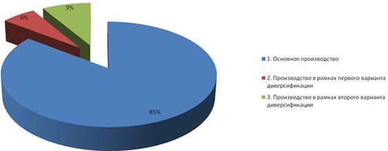 По первому проекту диверсификации планируется объем в стоимостном выражении в процентах от основного производства: на первый год – 7%, второй год – 15%, третий год – 25%.