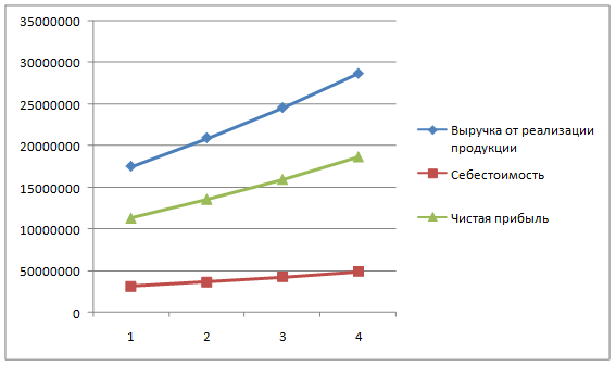 | 1 | Выручка от реализации продукции | 175000000 | 203493938 | 239288901 | 286756537 |