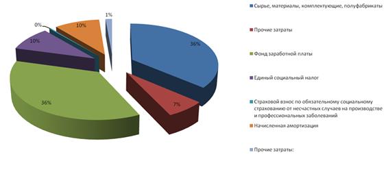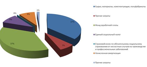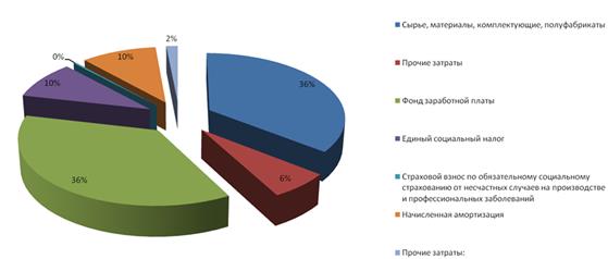 В текущем году затраты на производство продукции составили 13000 тыс. руб., из которых большую долю (84,62%) занимают затраты на сырье и материалы, 15,38% — прочие затраты.
