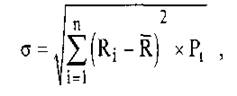 в) Среднеквадратическое (стандартное) отклонение. Этот показатель является одним из наиболее распространенных при оценке уровня индивидуального финансового риска, так же как и дисперсия определяющий степень колеблемости и построенный на ее основе. Он рассчитывается по следующей формуле: