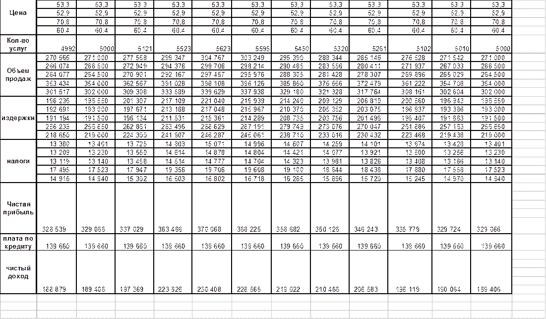 1. Цена * количество услуг = объём продаж