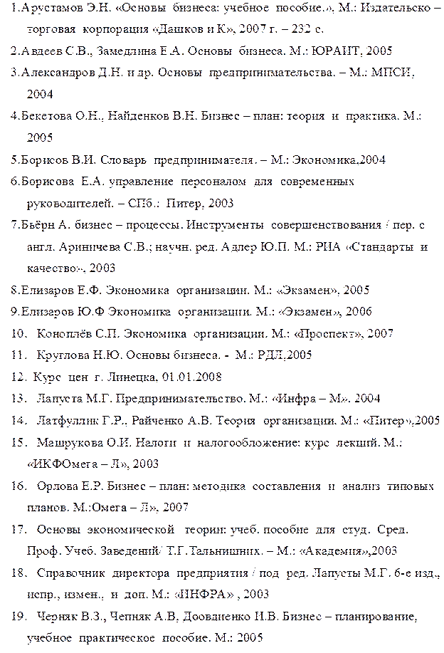 [6] Бекетова О.Н., Найденков В.Н. – Бизнес – план: теория и практика. М.: 2005 г.