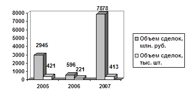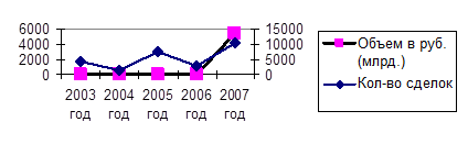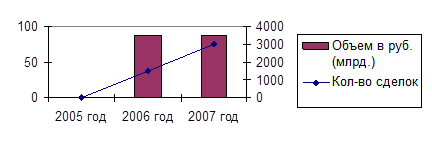 Так, количество заключенных сделок по государственным ценным бумагам Республики Беларусь в 2005г. составило 837 (в 2004г. данный показатель составил 802), в 2006 году – 750, в 2007 году – 365. На 01.01.2008г. к участию в аукционах Министерства финансов Республики Беларусь, проводимых через биржу, были допущены 24 банка и 10 небанковских профучастников рынка ценных бумаг, к участию в покупке при размещении облигаций банков – 10 банков и 1 небанковский профучастник рынка ценных бумаг. Суммарный объем торгов государственными ценными бумагами в 2005г. составил 8016,8 млрд. рублей или 81601419 облигаций (в 2004г. данные показатели составили 777,6 млрд. рублей или 76996904 облигации); в 2006г. составил 5210,3 млрд. рублей или 54114927 облигаций; в 2007г. – 7937,50 млрд. рублей или 84735769 облигаций. Суммарный объем торгов краткосрочными облигациями в 2007г. составил 136,70 млрд. рублей или 1386517 облигаций, средневзвешенная доходность по сделкам «до погашения» в 2007г. составила 10,74% годовых.