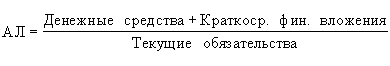 1.Коэффициент абсолютной ликвидности | Характеризует структуру баланса. Показывает, какая часть краткосрочных заемных средств может быть при необходимости погашена немедленно. |
