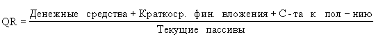2.Коэффициент быстрой ликвидности | Показывает, какую часть краткосрочной задолженности организация может покрыть в ближайшей перспективе при условии полного погашения дебиторской задолженности |
