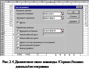 Расположение исходных данных в таблице данных представлено на рис.2.9.