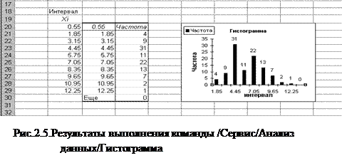 При нажатии на кнопку Гистограммы получаем гистограмму распределения частот рис.3.8, б).