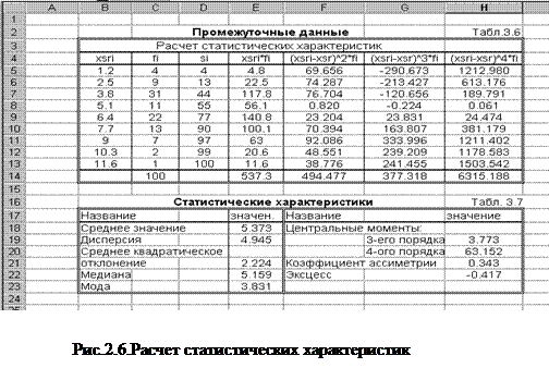 Для расчета статистических характер составляется таблица промежуточных результатов табл.2.2 (символом "?" обозначена сумма данных в столбце).