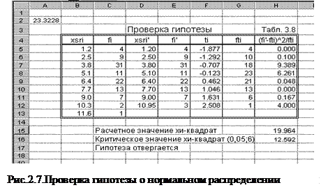 , то выдвинутая гипотеза о нормальном распределении интервального ряда не отвергается (не противоречит опытным данным) с вероятностью ошибки a=0.05.