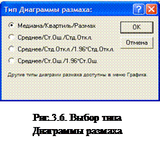 При нажатии этой кнопки появляется диалоговое окно Диаграмма размаха рис.3.6, в котором необходимо выбрать тип диаграммы для построения.