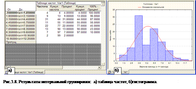 При нажатии на кнопку Таблицы частот получаем результирующую таблицу частот, представленную на рис.3.8, а).