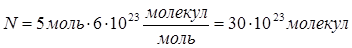 N ( H 2 O ) = 3 моль∙6∙1023 молекул/моль=18∙1023 молекул |