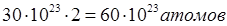N ( S ) = 3 моль∙6∙1023 атомов/моль = 18∙1023 атомов |