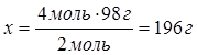 Дано: n (NaOH) = 2 моль H2 SO4 | 2 моль х г 2NaOH + H2 SO4 = Na2 SO4 + 2H 2O 2 моль 2 моль 18 г/моль 36 г 1. Определяем массу воды 2 моль: 2 моль = х: 36 г