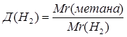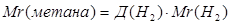 Mr (в-ва)=Д(Н2 )∙ Mr ( H 2 ) Mr (в-ва)=8∙2=16 |