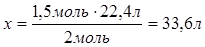 Дано: ν(Н2 )=2моль | 1. Определяем объем водорода