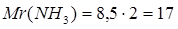 | Ответ: | относительная молекулярная масса аммиака 17. |
