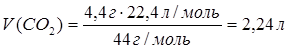 | Ответ: | 4,4 г карбон (IV) оксида занимают объём 2,24 л. |