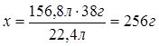 | Ответ: | масса 156,8 л газа 256 г. |