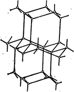 Подобное представление о строении молекулы позволяет объяснить многие свойства воды, в частности структуру льда. В кристаллической решётке льда каждая из молекул окружена четырьмя другими. В плоскостном изображении это можно представить так: