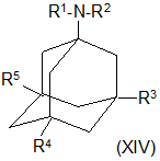 Кроме того алкильные производные аминоадамантана схожие по строению с соединениями типа (XIV) могут применяться для лечения заболеваний внутреннего уха и шума в ушах [21].