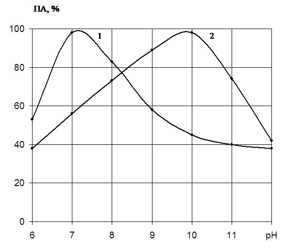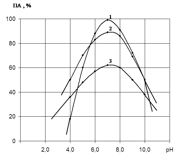 Вместе с тем отметим, что зависимость активность – рН носит подчинительный характер и связана со структурой активного центра,