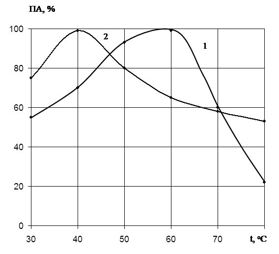 3. Выяснены температурные оптимумы протеолитических ферментов – для протеиназы I – 60, а для протеиназы II – 400С.