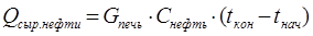 G печь – расход нефти через печь кг/час; Снефть – теплоемкость нефти кг/Дж×К; ( t кон – t нач ) – разность между начальной и конечной температурами нефти.