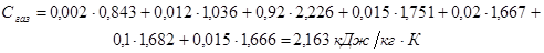 Теплоемкость попутных газов рассчитаем по правилу смешения средних теплоемкостей компонентов, приведенных в таб. 15 [7]: