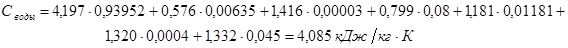Теплоемкость воды с содержанием различных солей, кислот и оснований рассчитываем аналогичным образом таб. 16 [7]: