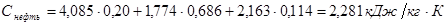 Так как нефть приходит с 20% -ой обводненостью и содержит 11,4% попутного газа, поэтому рассчитаем теплоемкость приходящей нефти по правилу смешения: