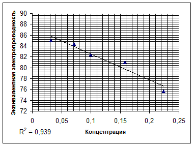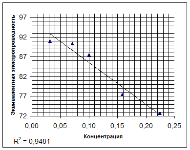 Используя полученные значения удельных проводимостей, находили эквивалентные проводимости: ![]()