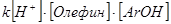 1. Происходит протонирование олефина с образованием карбкатиона: