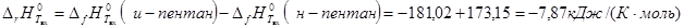 определено для Твх из полиномного уравнения для Ср н-пентана с помощью функции «Поиск решения» программы «MicrosoftExcel»;