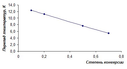 Графическая зависимость перепада температур на входе и выходе от степени конверсии представлена на рисунке 3.