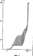 (Др — разность электронных плотностей домена и матрицы, V — объем домена,./V — число доменов в облучаемом объеме, к — коэффициент). И* соотношения (2) следует, что в рассматриваемом случае возрастание интегральной интенсивности связано с увеличением Ар. (Если считать, что рост доменов компенсируется убыванием их числа, то FiV=const.) Этосвидетельствует отом, что с повышением температуры продолжается микрофазовое разделение, т. е. из матрицы, которая в обобщенном смысле может рассматриваться как раствор, выделяются сегменты, составляющие домены.