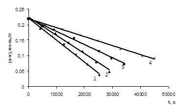 Key words: kinetics, epichlorohydrin, order of reaction, power parameters, acetic acid, derivatives of an acetic acid, catalyst of the basic nature, structure of an acid reagent.