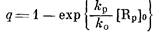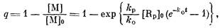 где [М] о — исходная концентрация мономера. Отсюда следует, что предельный выход полимера q (qпри £>1), образовавшегося после достижения максимума скорости полимеризации, описывается следующим уравнением: