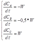 Реакция характеризуется константой скорости k=f(t) и константой равновесия К=f(t), для которых имеются экспериментальные данные.