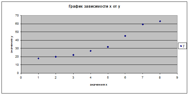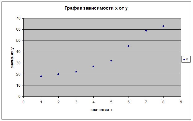 Согласно построенному графику, между значениями x и y устанавливается линейная зависимость, описываемая уравнением: у = а-аx.