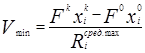 является ограниченной функцией только от концентраций в реакционной зоне. В случае использования закона действующих масс максимальное значение этой функции будет достигаться, когда в реакционной зоне присутствуют только реагенты в стехиометрическом соотношении. Подставляя в уравнение максимальное значение усредненной скорости, получим минимальное значение объема реакционной зоны Vmin, при котором заданная производительность, определяемая левой частью, теоретически еще может быть достигнута